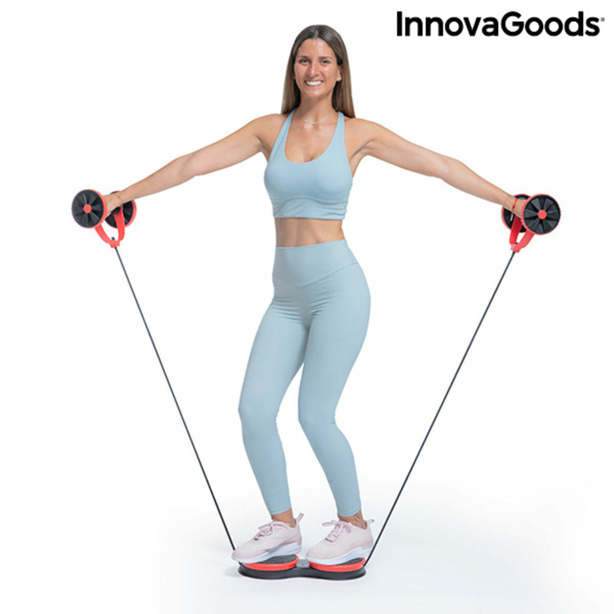 Un doppio rullo per addominali con dischi rotanti e bande di resistenza elastiche per un allenamento completo che permette di eseguire un'ampia varietà di esercizi. Questo dispositivo multifunzionale di fitness, completo e versatile, è ideale per fare ginnastica e mettersi in forma, poiché rafforza e tonifica tutta la muscolatura del corpo (addominali, braccia, gambe, glutei, torace, vita, spalle, schiena, ecc.) Grazie al suo design ergonomico, moderno, compatto e adattabile, offre molteplici possibilità e può essere utilizzato all'interno o all'esterno (in casa o in parchi, giardini, ecc.), oltre ad essere facile da trasportare e conservare. La piattaforma che funge da base ha dischi rotanti antiscivolo con rotazione a 360°, il che aumenta il numero e il tipo di esercizi che si possono realizzare. Il livello di intensità delle bande elastiche può essere regolato per offrire più o meno resistenza (fino a 5 livelli). Le sue 4 modalità di utilizzo possono essere indipendenti o combinate tra loro, secondo le proprie esigenze e preferenze (modalità manubri, modalità ruota per addominali, modalità bande elastiche o pull rope e modalità rotazione). Include anche un'utile manuale per gli esercizi per un allenamento più completo ed efficace.